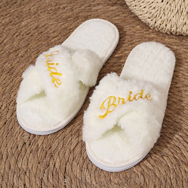 Women's Cross Band Fuzzy Slippers Plush Furry House Slippers Bridesmai – ChicSew